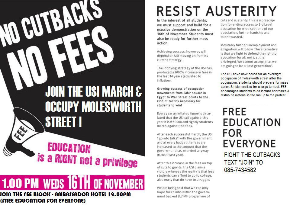 Unwittingly, those that support fees on equity grounds are supporting the extension of the neoliberal model which fuels inequality - a model which despises public services, and seeks to reduce public funding by shifting the costs burden onto to individual, in order to maintain low taxes on wealth & profits. This is the same underlying process affecting water charges, the health service & other public services. The application of these neoliberal principles to tertiary education is not the answer to improving equality of access. It's this economic model itself which needs to be opposed.