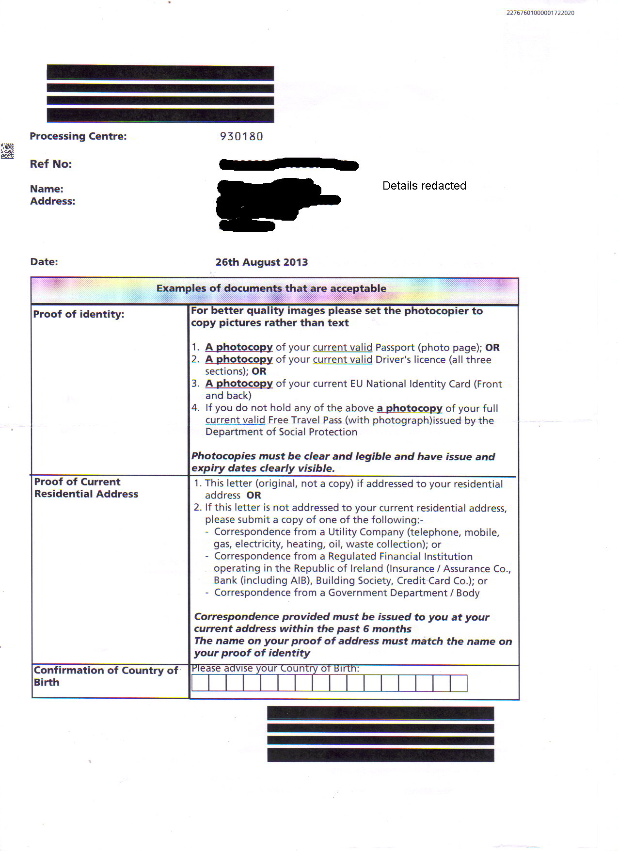 This morning I received the attached letter from AIB requesting that I provide 'proof' of my identity.