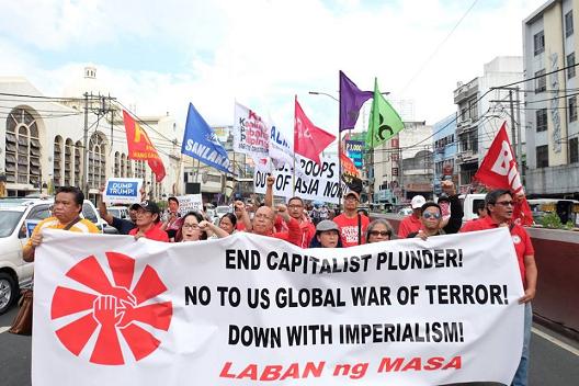 Thousands of Filipinos took to the streets to protest the five-day visit of US President Donald Trump. One of the largest protests was the November 13 rally and march by Laban ng Masa, a new coalition of trade unionists, community activists, urban poor organisations, feminists and socialists formed in September to oppose the authoritarian and violent policies of President Rodrigo Duterte. Laban ng Masa released the statement below in response to Trump's visit.