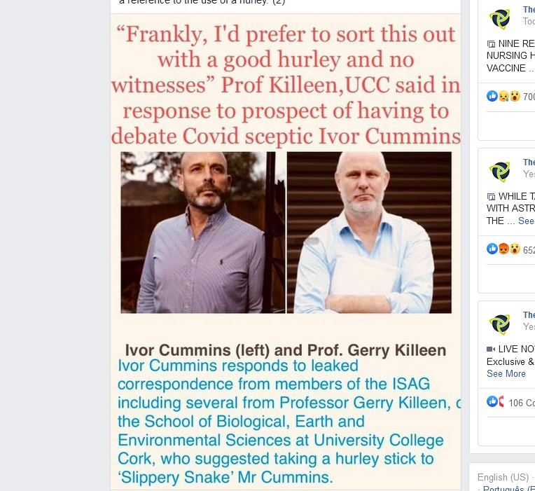 In a wide ranging interview with John Ryan from the online news platform broadsheet.ie, Ivor Cummins says he will be reporting correspondence written about him by Professor Gerry Killeen, of the School of Biological, Earth and Environmental Sciences at University College Cork. Killeen appears regularly on radio and tv and is a member of the Independent Science Advocacy Group (ISAG) who are pushing for a level 6 zero Covid lockdown.