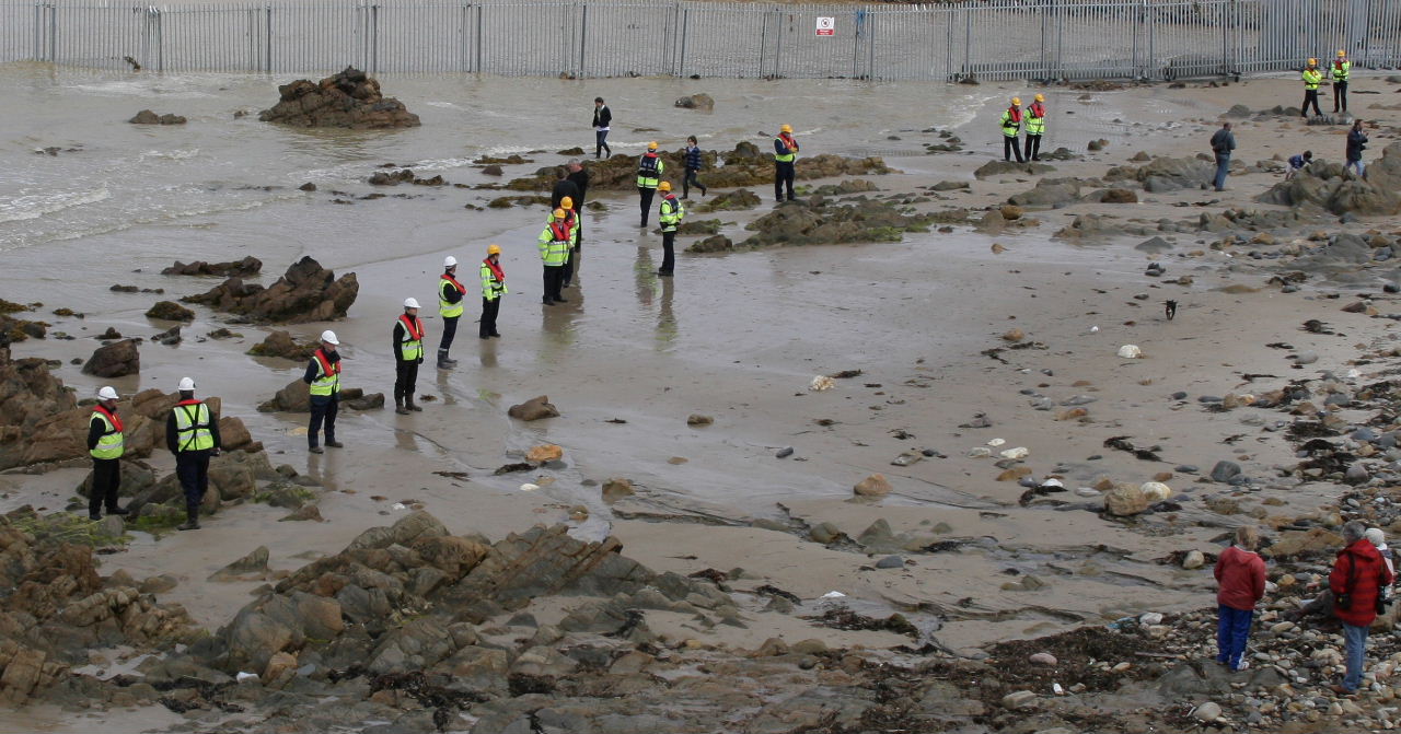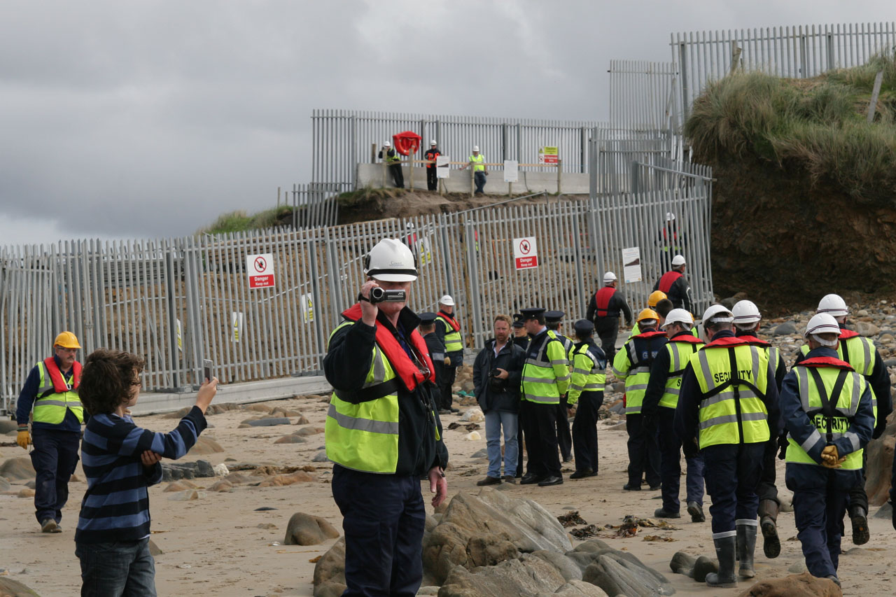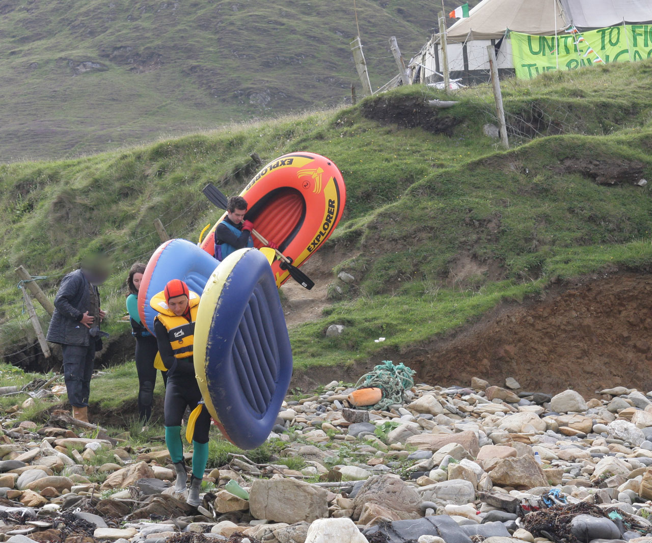 Gardaí & Shell Security attempt unsuccessfully to blockade the beach. They are challenged by protesters, boaters and swimmers who refuse to be blockaded from the water.