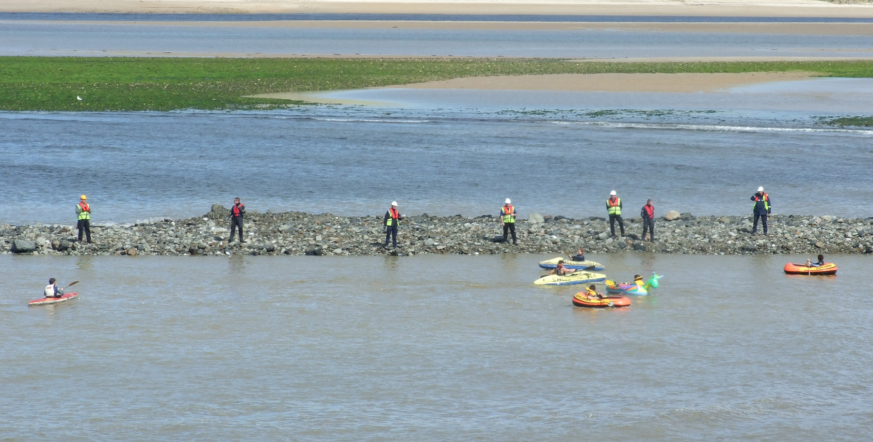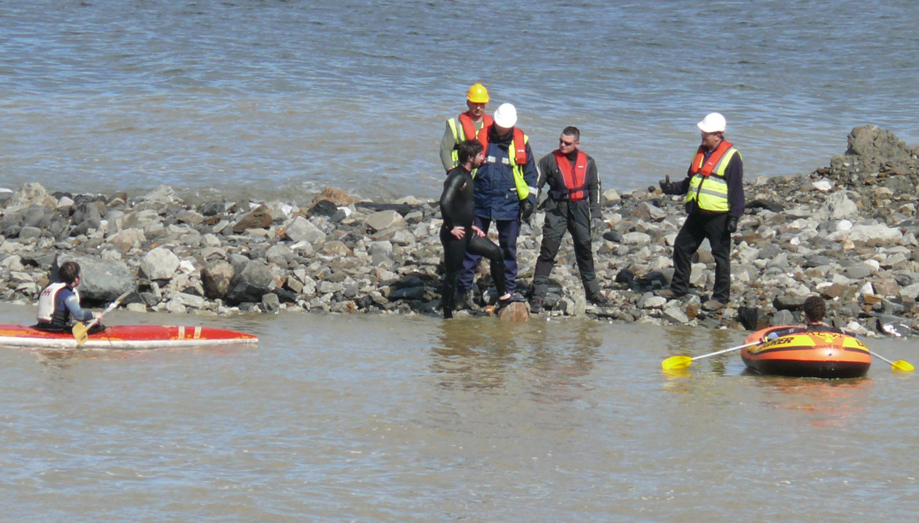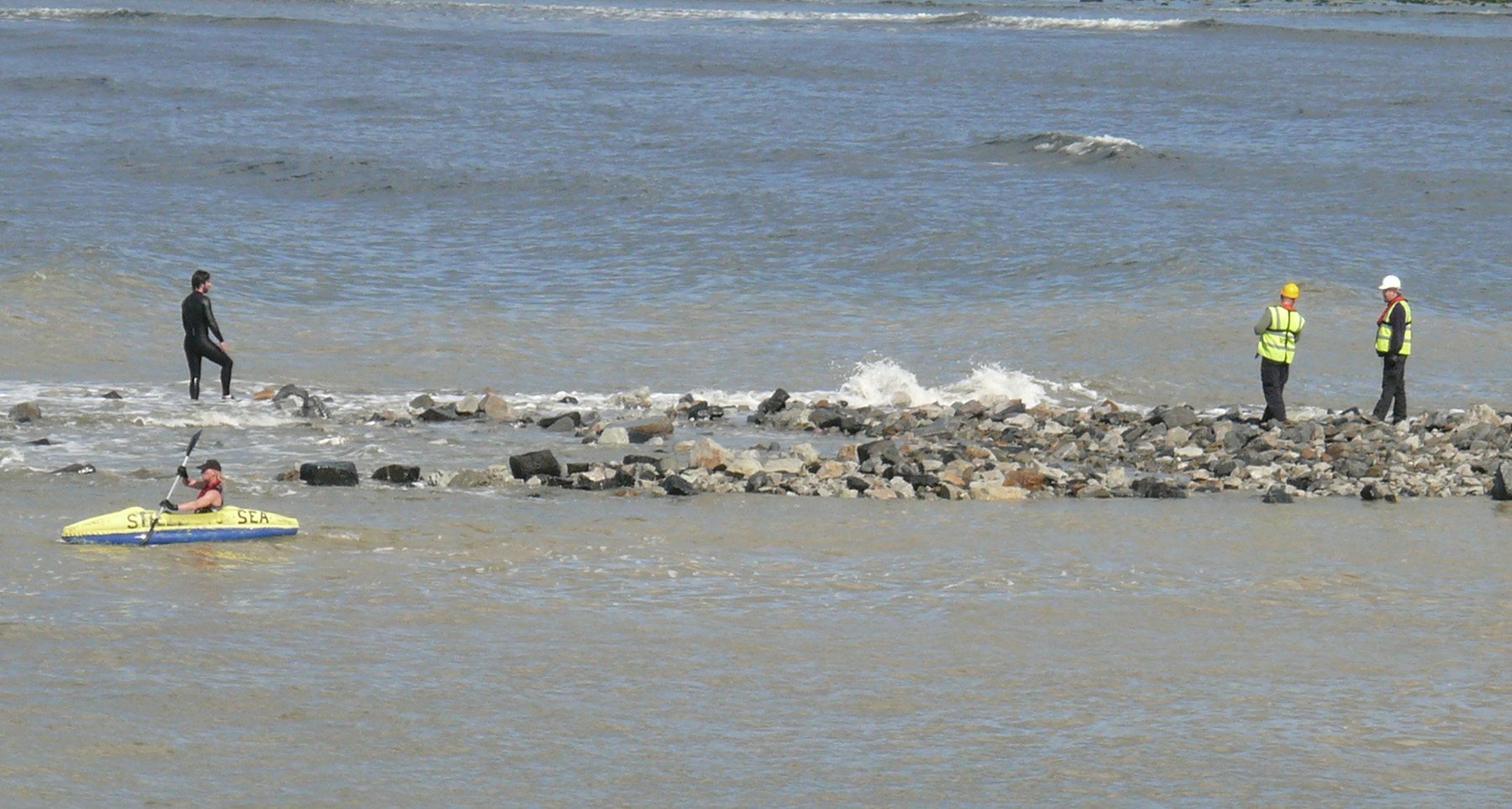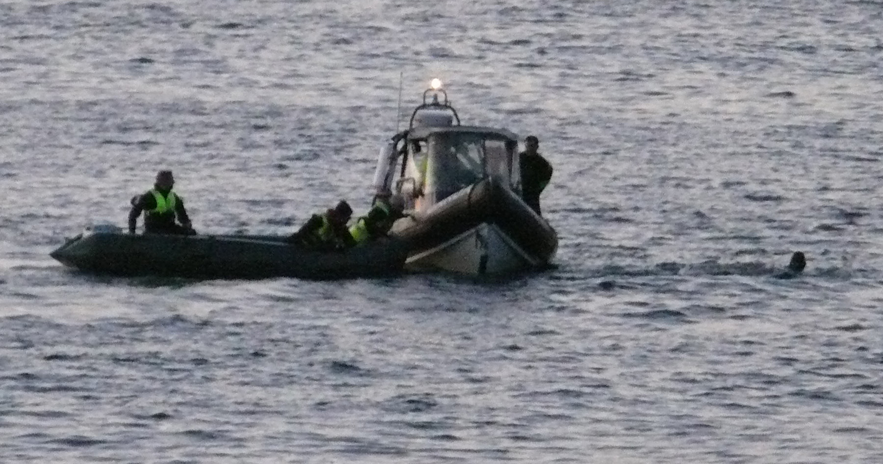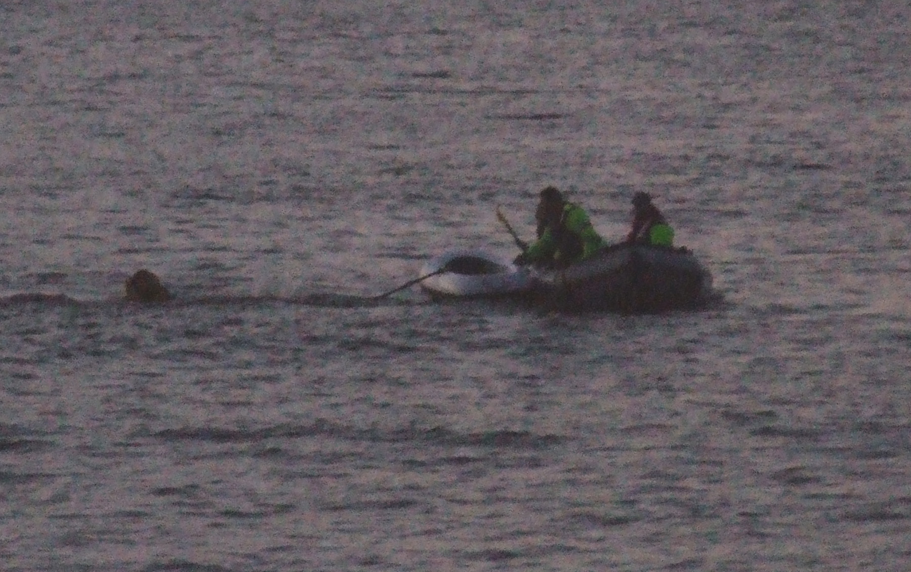 Kayaker and intrepid swimmer joined in the water by two Shell insecurity men