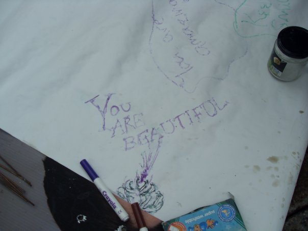 hoisting banners- after quite awhile evergreen asked us to remove them, but they were up for most of the day.