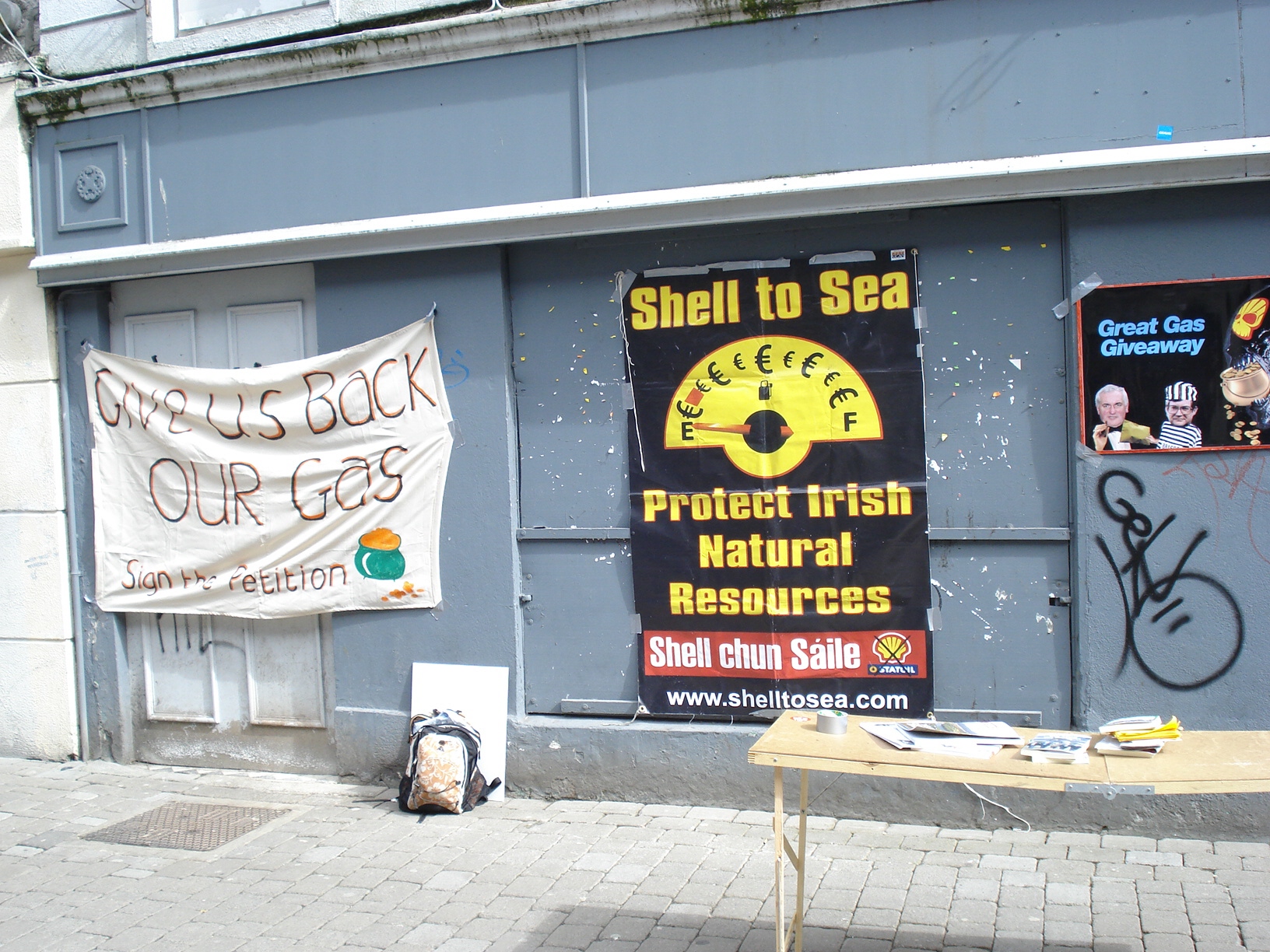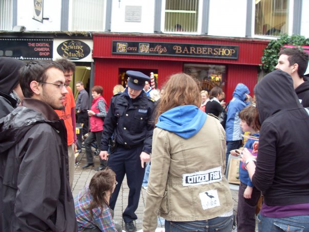 within a week of that brave effort, where the cops didn't know what to bust people as. & the community wardens (greys) seemed all too bust hungry, the streets of Galway were further travailed by the forces of capitalism as the photos here will show.
