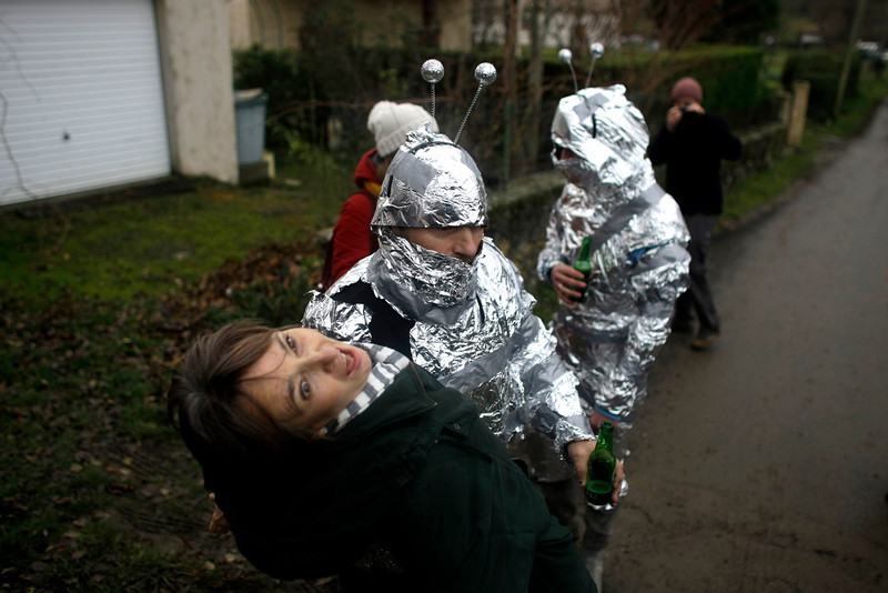 merry pranksters make light with exhausted locals in Bugarch, France for failed Mayan 2012 alien rescue thing
