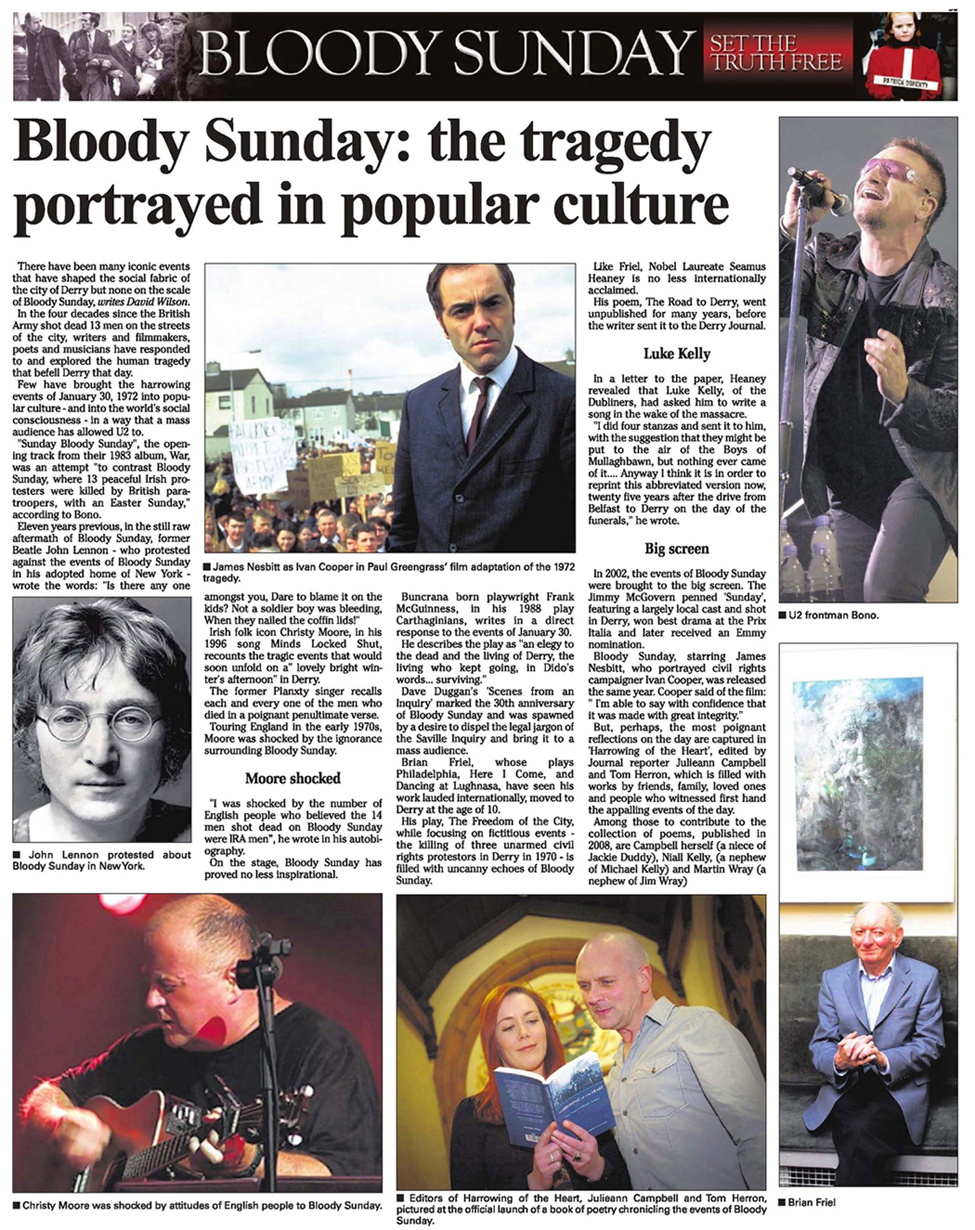 Derry Journal's 15 June 2010 page on Bloody Sunday in popular culture - click on the image to read it